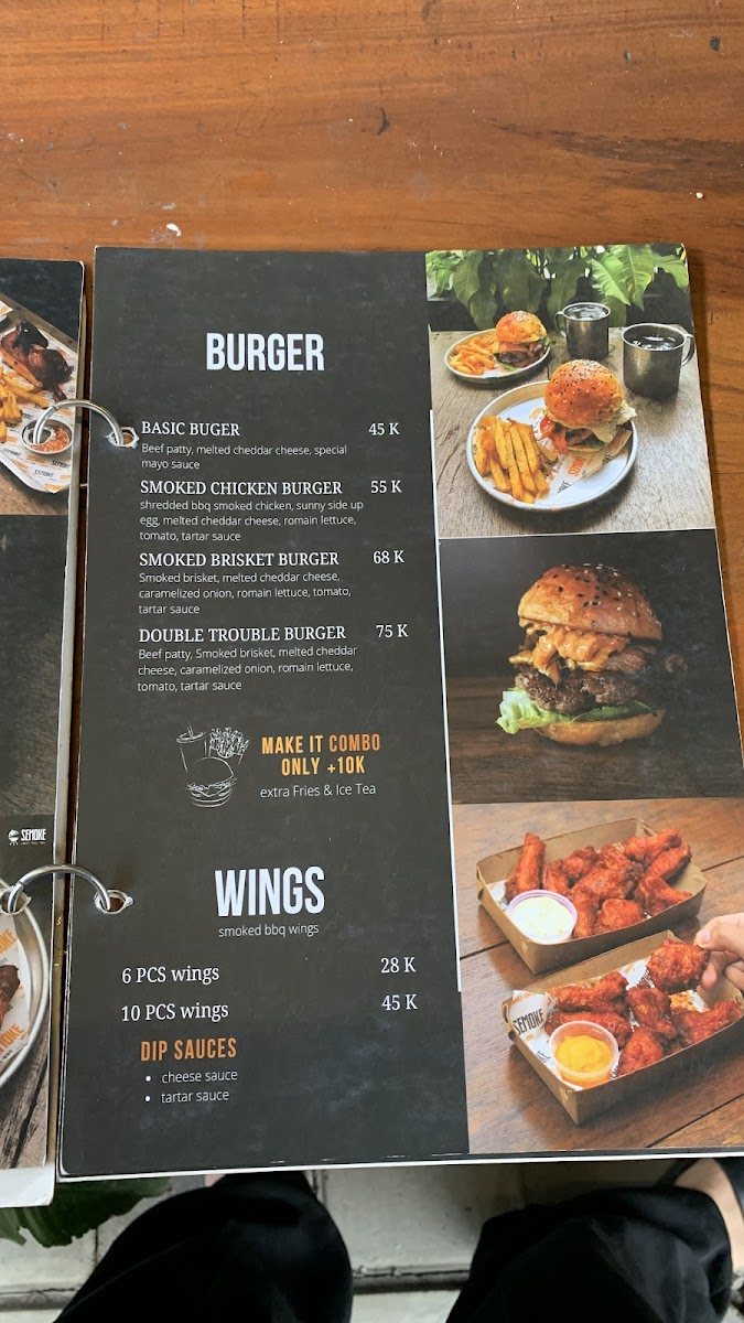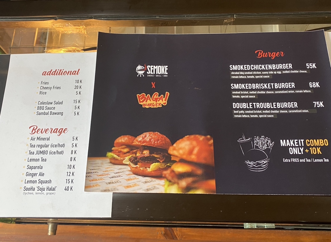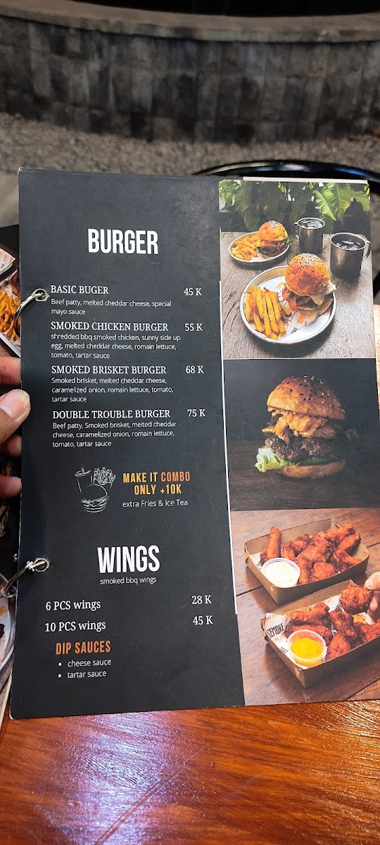 “ I ordered smoked brisket burger. The food quite pricey because 68k only for one burger without drink or fries, and the briquettes are tough when they are cold. And I ordered cheesy fries, it was okay also. The service a bit long, and if you come during the day the place is quit hot. ”